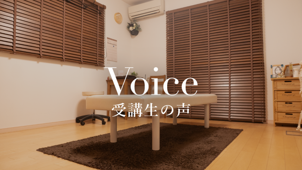 実際に施術を受けて自分の症状が改善したことがきっかけで、「この技術を学んでみたい」と思い受講しました。